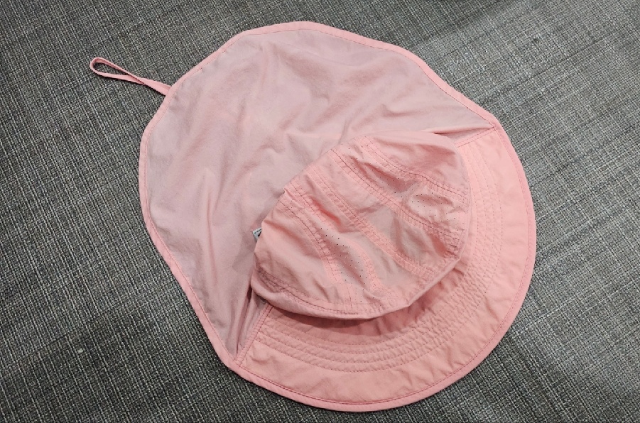 특징: 분홍색 모자, 앞에 벙거지 형태, 뒤에 햇빛가림천