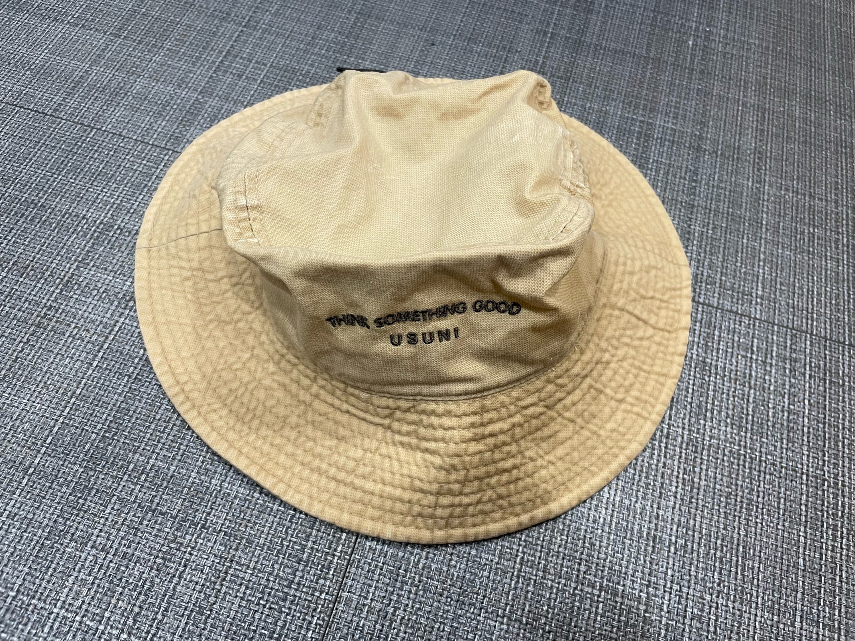 (1179) - [서프하우스] 모자 24.08.10 방문수령 습득 장소 : 서프하우스 안내데스크습득물품 : (THINK SOMETHING GOOD USUNI) 베이지색 버킷햇 모자 모자 목록으로
