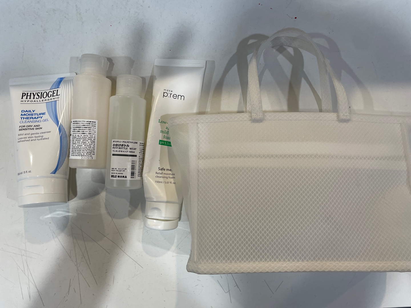 (167) - [서프하우스] 세면 가방 24.06.01 미처리 습득 장소 : 여자락커 파우더룸물품 : 흰색 세면가방특징 : 클렌징 폼, 클렌징 젤, 스킨,로션이 담긴 흰색 메쉬 소재 가방 보냉백 집게 핀 목록으로