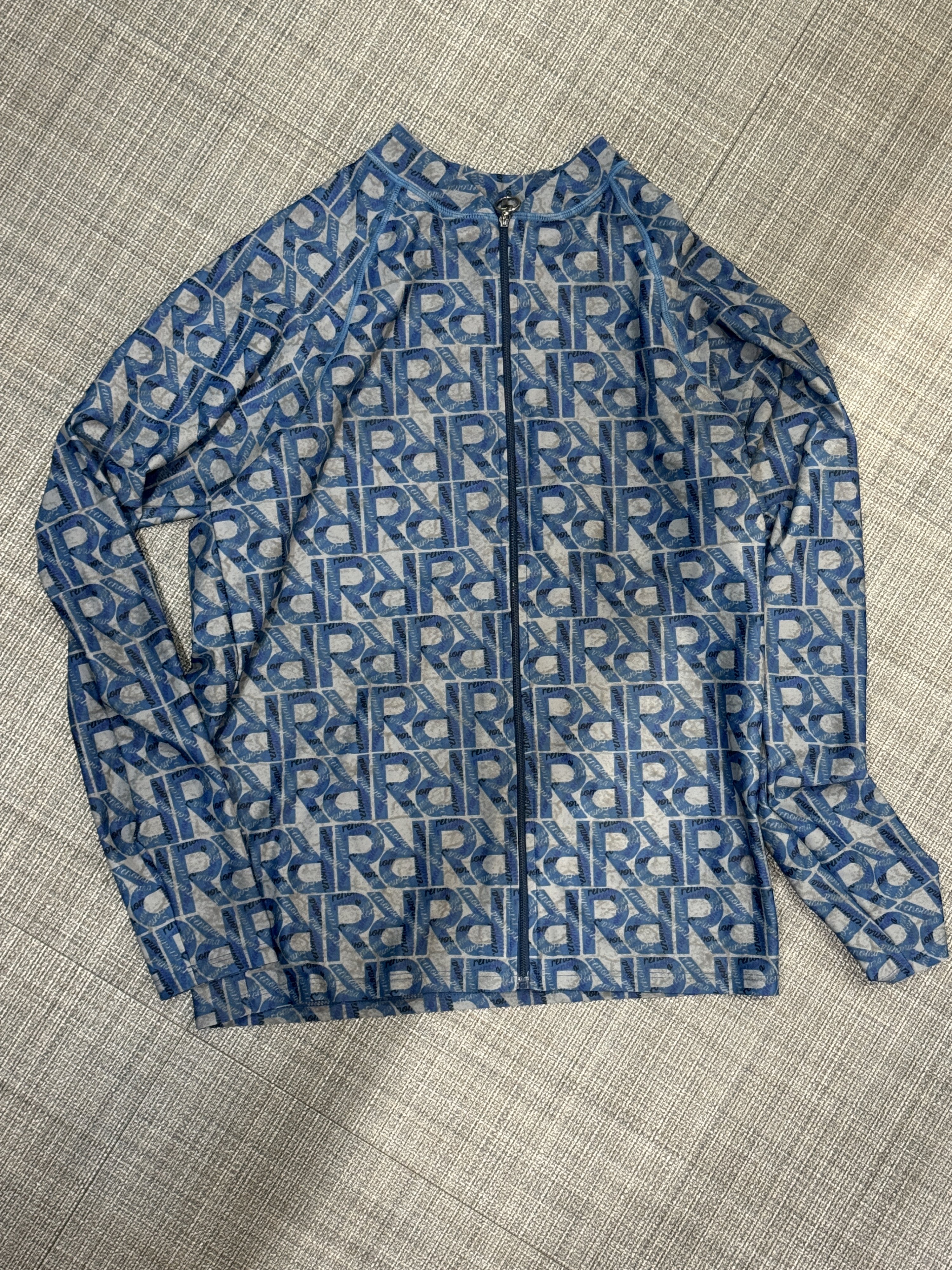 (203) - [서프하우스] 수영복 24.06.07 미처리 습득 장소 : 남자 락커 내부 습득물품 : RENOMA 남성 지퍼형 래쉬가드 상의특징 : ‘R’ 무늬 / 회색 & 하늘색 무늬 수영복 수영복 목록으로