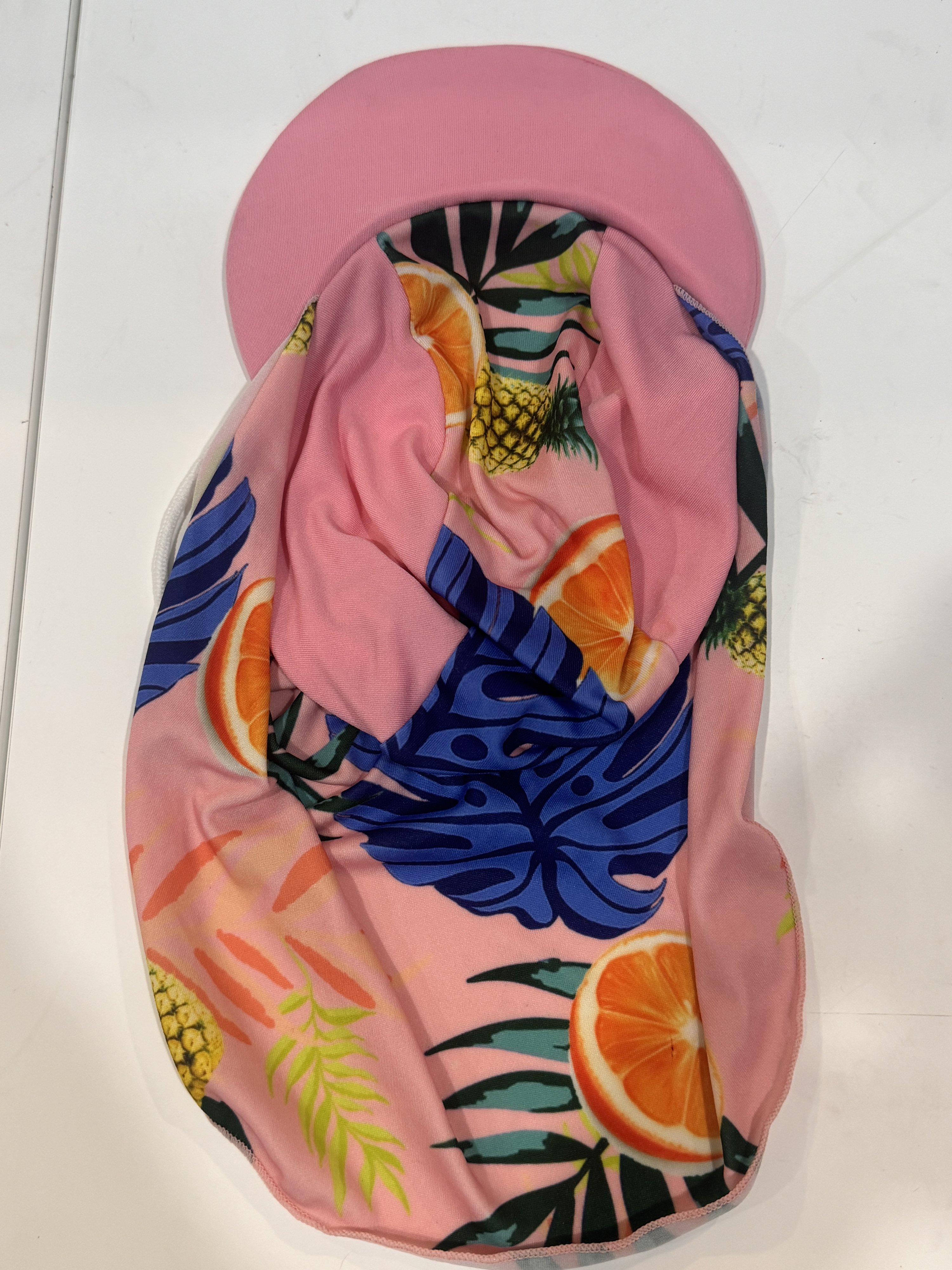 습득 물품 : 수영모자 핑크색,캡과 목 뒤 가리개가 있음