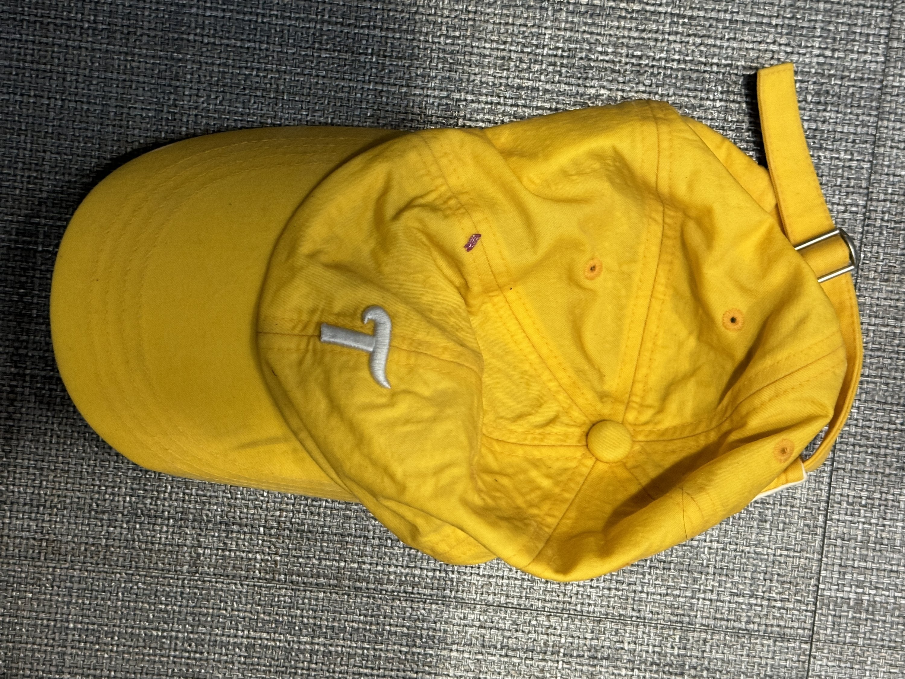 습득 물품 : 노란색 캡모자 흰색으로 T 라고 적혀있음