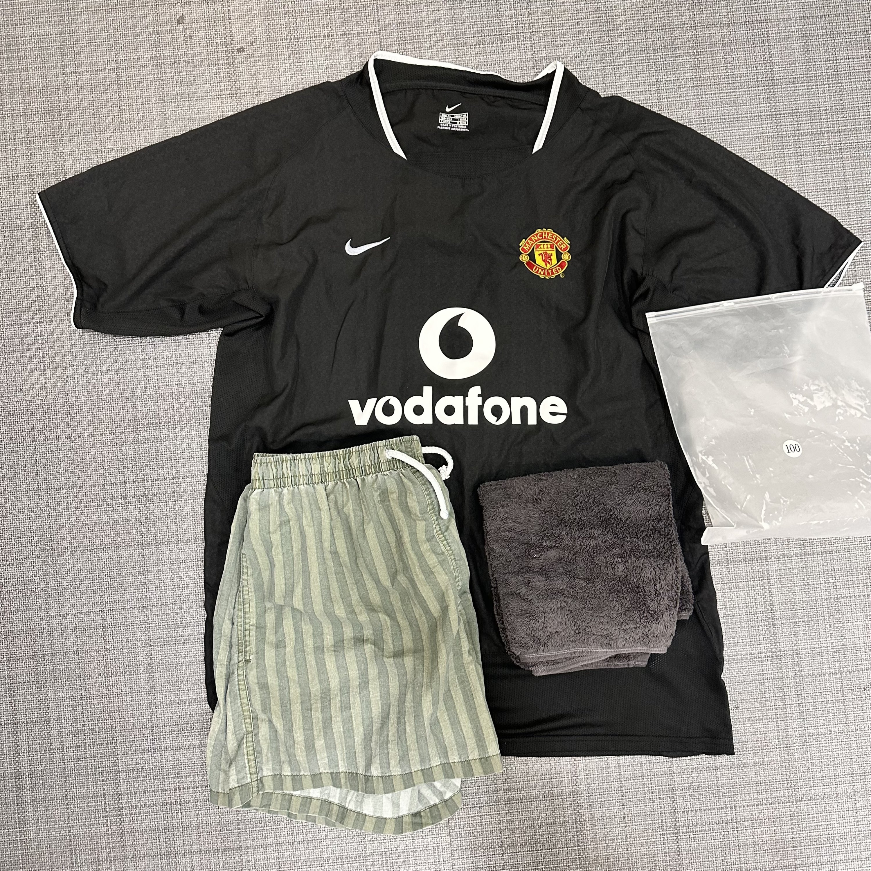 (695) - [자켓 대여소] 의류 24.07.21 미처리 습득 장소 : 수트대여소 앞 회색 의자습득 물품 : 나이키 멘체스터 유나이티드 검정색 반팔, 스트라이프 숏팬츠, 수건특징 : 흰색 불투명 지퍼팩에 함께 담겨 있었음. 모자 모자 목록으로