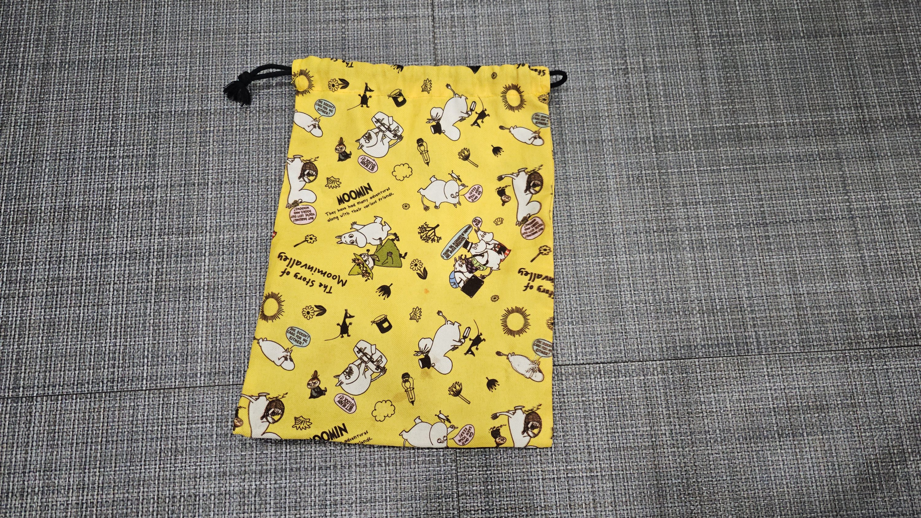 물건특징 : 노란색 무민그림 파우치, 파우치 내 보드부품