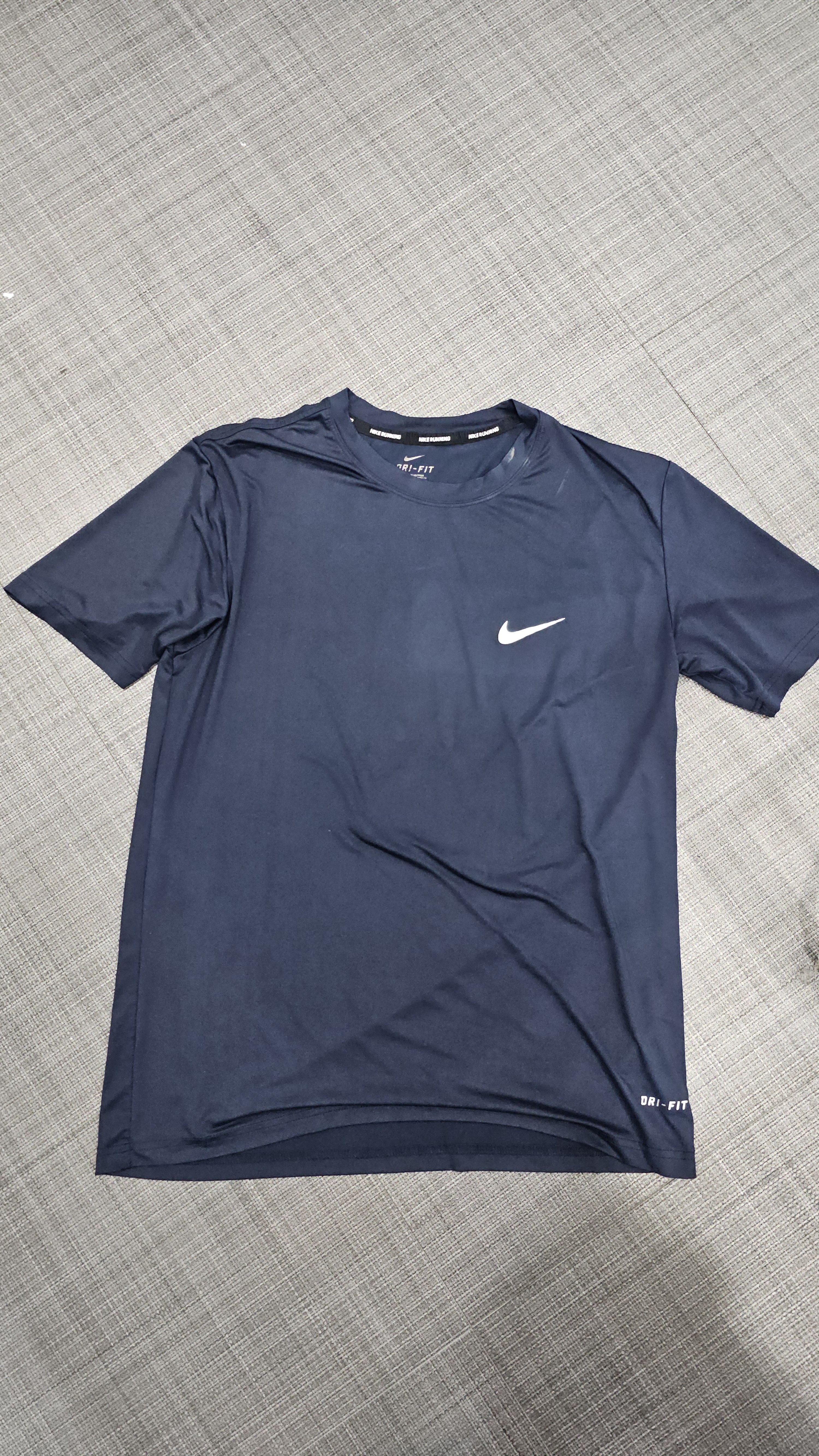 물품특징 : 나이키 드라이핏 남색 티셔츠, 왼쪽 가슴부분 나이키 로고