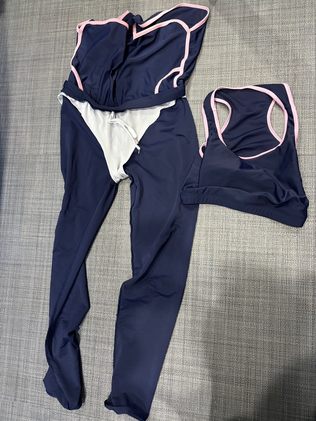 특징 : 남색, 핑크색 배색의 상하의 수영복