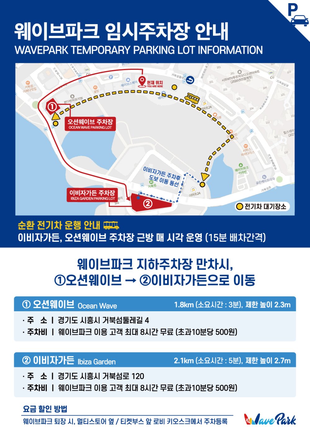 웨이브파크 임시 주차장 안내(6/1~9/30) WAVEPARK TEMPORARY PARKING LOT INFORMATION (6/1~9/30) 24.07.22 임시주차장 사용 가능 기간 : ~2024년 9월 30일(월) [테스트] 2025년 웨이브파크 글로벌 세일즈 파트너 모집 메가 디제이 페스티벌 (MEGA DJ FESTIVAL) (9/7~8) 목록으로