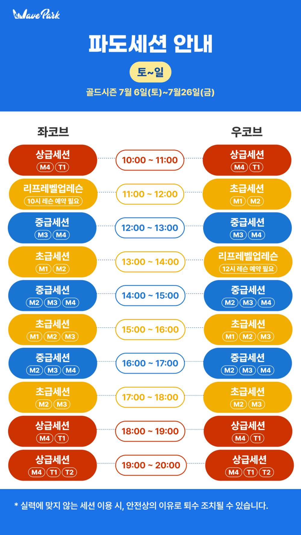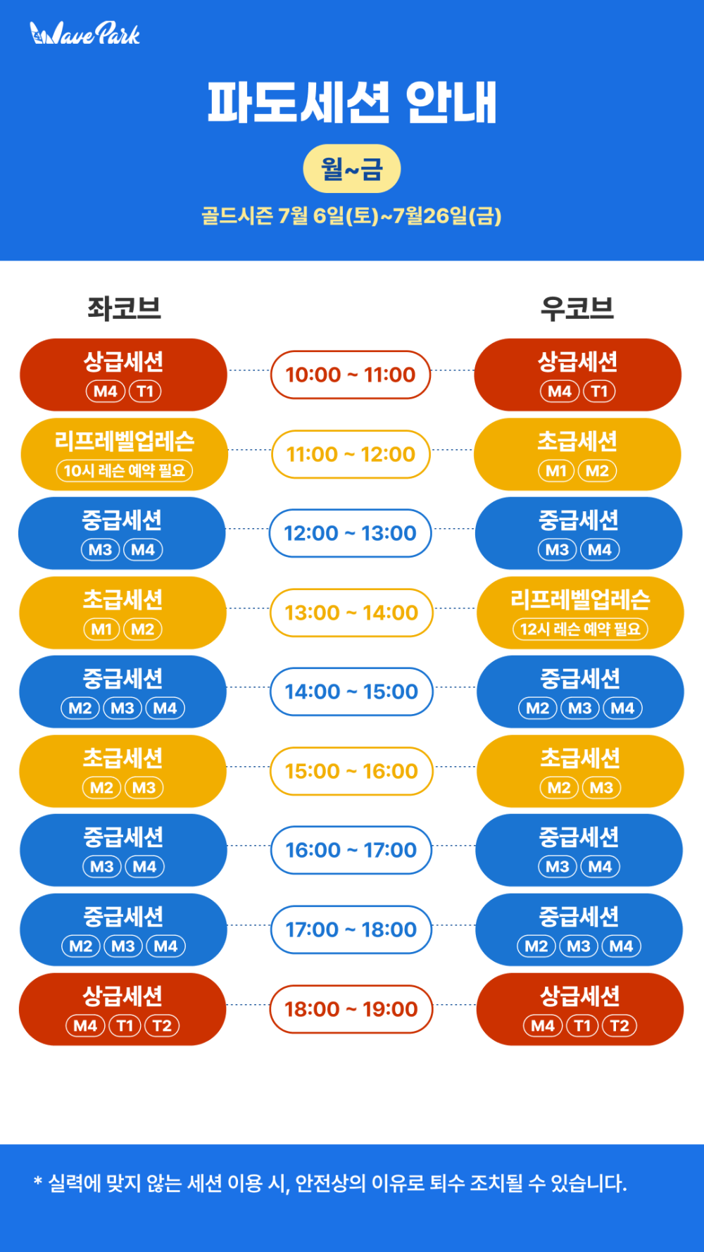 2024 골드시즌 운영시간 및 파도세션 안내 (7/6~7/26) 24.06.20 2024 Gold season Operation Hours & Surf Session (7/6~7/26) 2024 Middle season Operation Hours & Surf Session (6/6~7/5) 목록으로